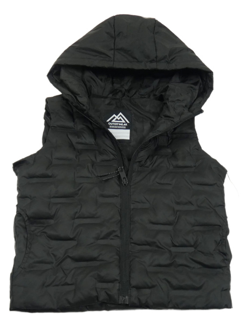 Černá šusťáková zateplená vesta s kapucí