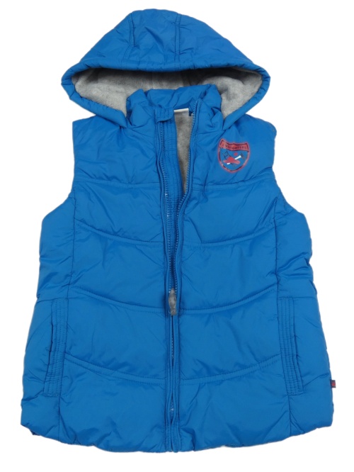 Azurová šusťáková zateplená vesta s potiskem a kapucí