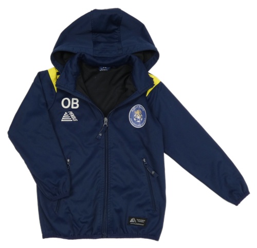 Tmavomodro-žlutá softshellová fotbalová bunda se znakem a kapucí PENDLE