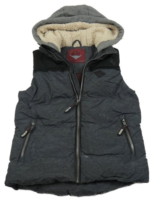 Černo-melírovaná šusťáková zateplená vesta s nášivkou a kapucí Next