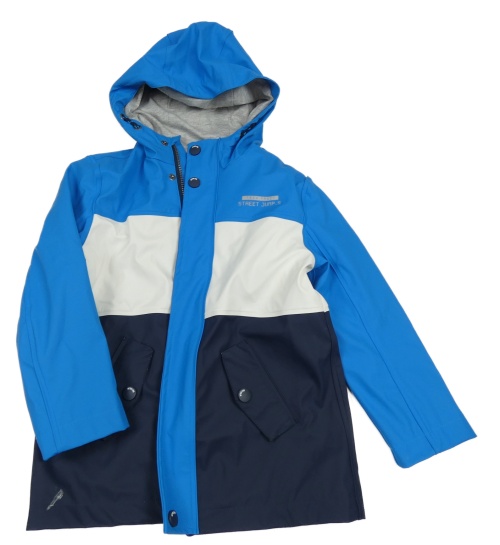 Modro-bílo-tmavomodrá nepromokavá jarní bunda s kapucí C&A