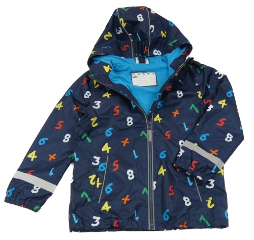 Tmavomodrá šusťáková jarní bunda s čísly a kapucí Topolino