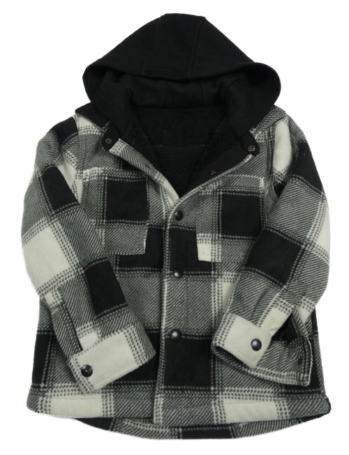 Černo-bílá kostkovaná fleecová zateplená bunda s kapucí dunnes