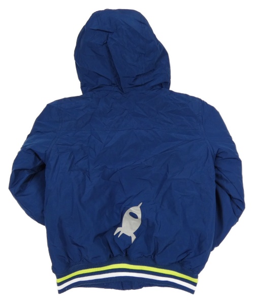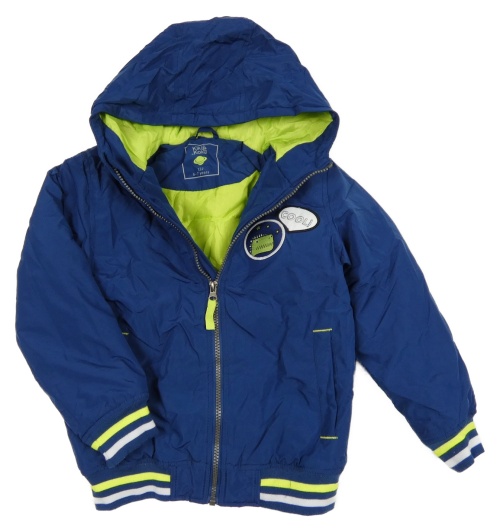 Kobaltově modrá šusťáková zimní bunda s dinosaurem a kapucí Kiki