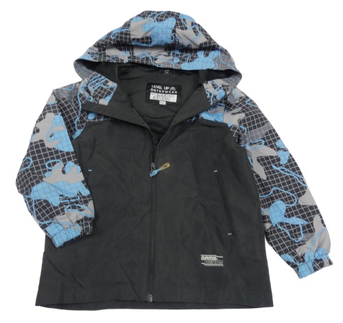 Černo-modro-šedá šusťáková jarní bunda s kapucí F&F