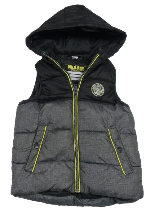 Černo-tmavošedá šusťáková zateplená vesta s nášivkou a kapucí Dopodopo