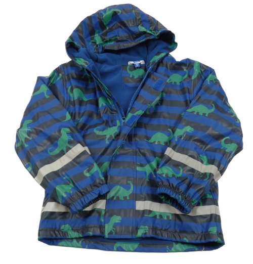Modro-černá pruhovaná pogumovaná jarní bunda s dinosaury a kapucí Kids