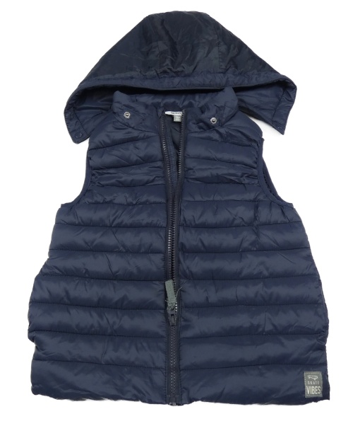 Tmavomodrá šusťáková prošívaná zateplená vesta s odepínací kapucí Kids