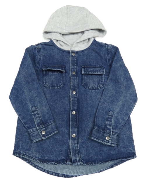 Tmavomodrá riflová košilová bunda s teplákovou kapucí