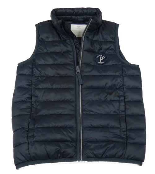 Tmavomodrá prošívaná šusťáková zateplená vesta s nášivkou Polarn O. Pyret