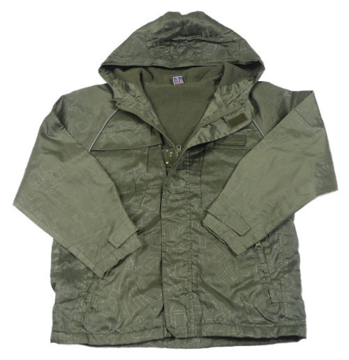 Khaki vzorovaná šusťáková podzimní bunda s nášivkou a kapucí TU