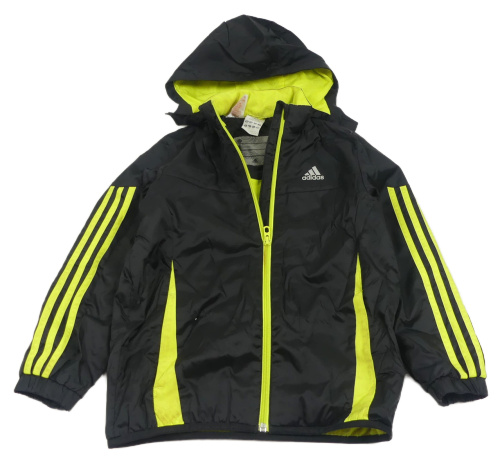 Černo-žlutá šusťáková podzimní bunda s kapucí Adidas
