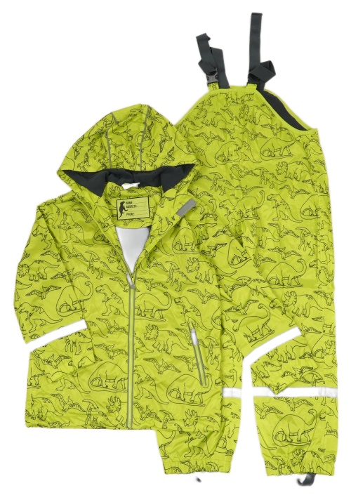 2Set - Limetková šusťáková podzimní bunda s dinosaury a kapucí + laclové podšité kalhoty Topolino