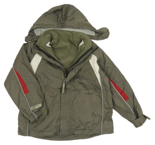 3v1 - Khaki-bílo-červená šusťáková podzimní bunda s ukrývací kapucí TCM