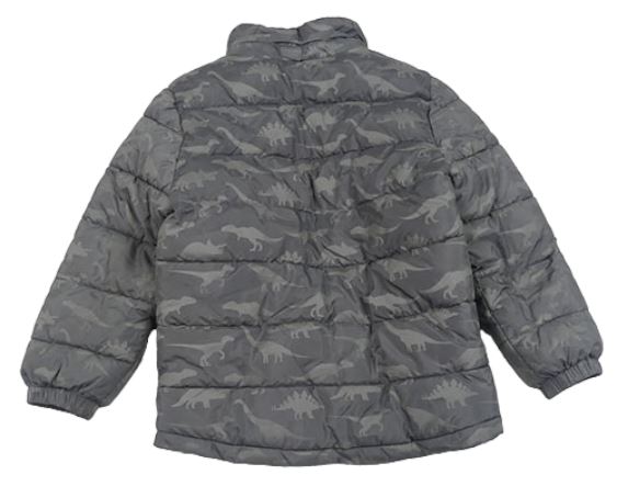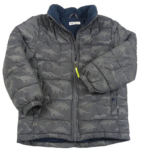Tmavošedá prošívaná šusťáková zimní bunda s dinosaury H&M