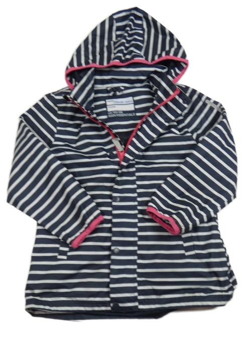 Tmavomodro-bílá pruhovaná šusťáková podzimní parka s odepínací kapucí Tchibo