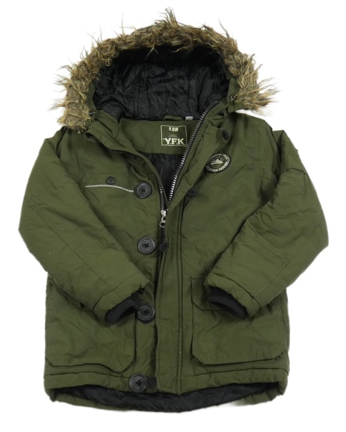 Khaki šusťáková zimní bunda s nášivkou a kapucí s kožešinou Y.F.K.