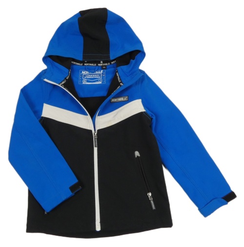 Cobaltově modro-bílo-černá softshellová bunda s nášivkou a kapucí C&A