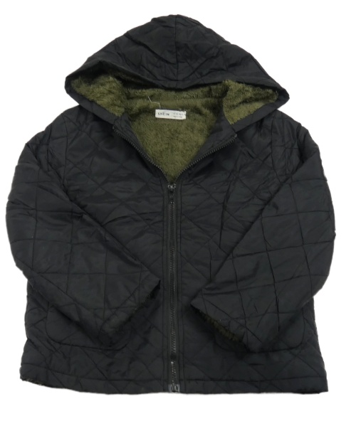 Černá šusťáková prošívaná zateplená bunda s kapucí Shein
