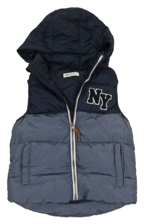 Tmavomodro-melírovaná šusťáková zateplená vesta s písmeny a kapucí H&M