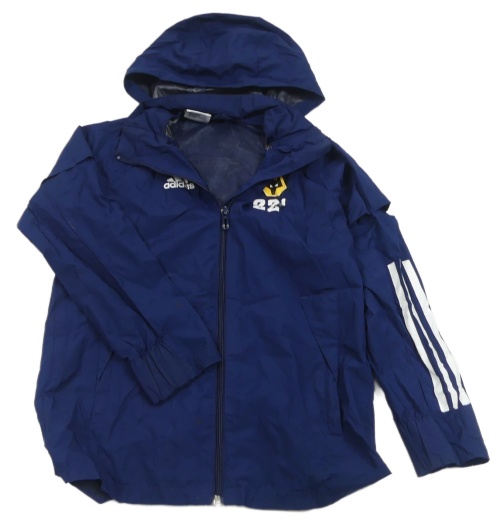 Tmavomodrá šusťáková sportovní bunda s číslem a ukrývací kapucí Adidas