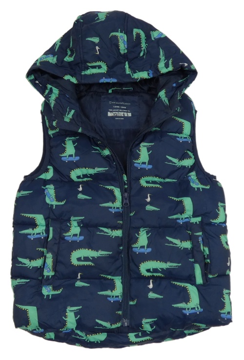 Tmavomodrá šusťáková prošívaná zateplená vesta s krokodýly a kapucí Primark