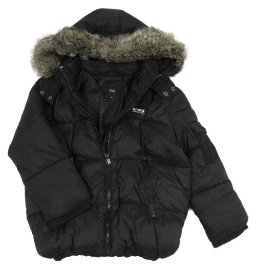 Černá šusťáková zimní bunda s kapucí s kožešinou River Island