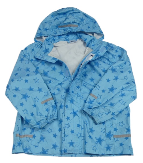 Modrá šusťáková nepromokavá bunda s hvězdičkami a odepínací kapucí Papagino
