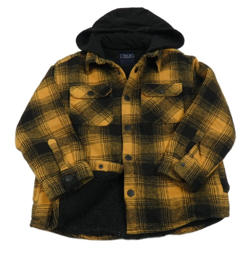 Černo-žlutá kostkovaná zateplená košilová bunda s kapucí Next