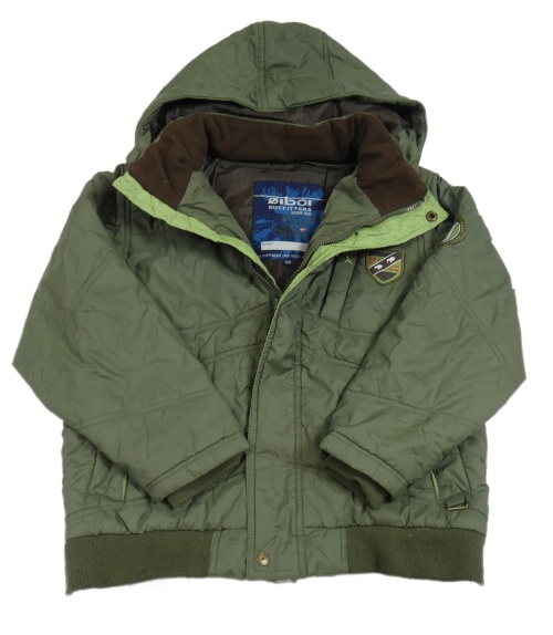 Khaki šusťáková zimní bunda s nášivkou a kapucí