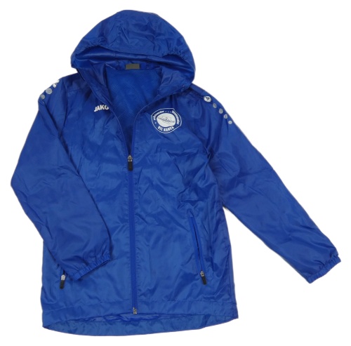 Modrá šusťáková sportovní bunda s potiskem a kapucí JAKO