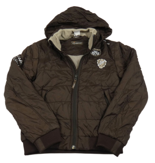 Hnědá šusťáková zateplená jezdecká bunda s logem a kapucí Fouganza