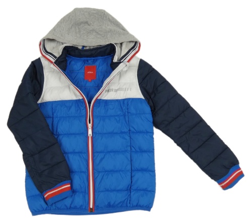 Tmavomodro-modro-bílá šusťáková zateplená bunda s teplákovou kapucí S. Oliver