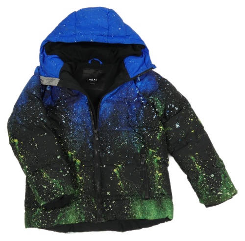 Černo-zeleno-safírová skvrnitá prošívaná šusťáková zimní bunda s kapucí Next