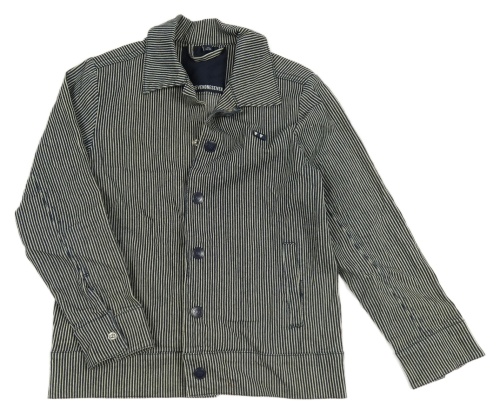 Tmavomodro-bílá pruhovaná riflová bunda