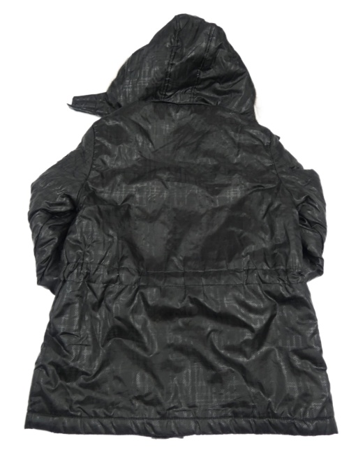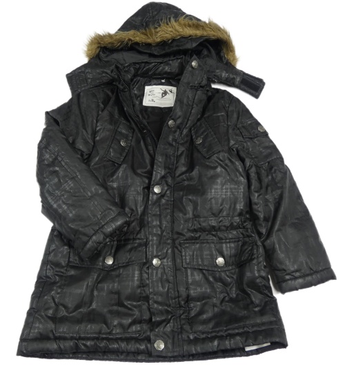Černá lesklá kostkovaná šusťáková zimní bunda s kapucí s kožešinou
