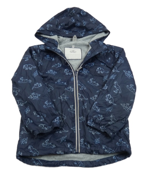 Tmavomodrá šusťáková jarní bunda s dinosaury a kapucí Topolino