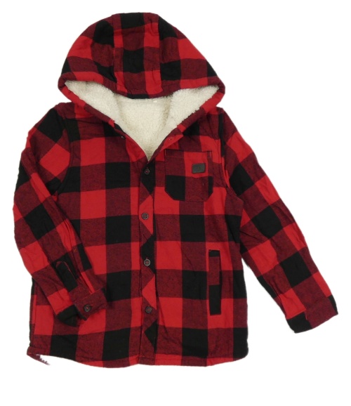 Červeno-černá kostkovaná košilová zateplená bunda s kapucí Nutmeg