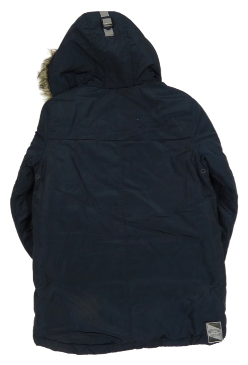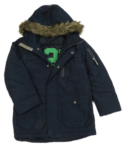 Tmavomodrá šusťáková zateplená bunda s kapsami a kapucí s kožešinou Next