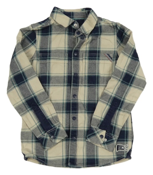 Béžovo-tmavomodro-zelená kostkovaná košilová bunda Okaidi