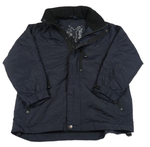 Tmavomodrá šusťáková lehce zateplená bunda s kapucí