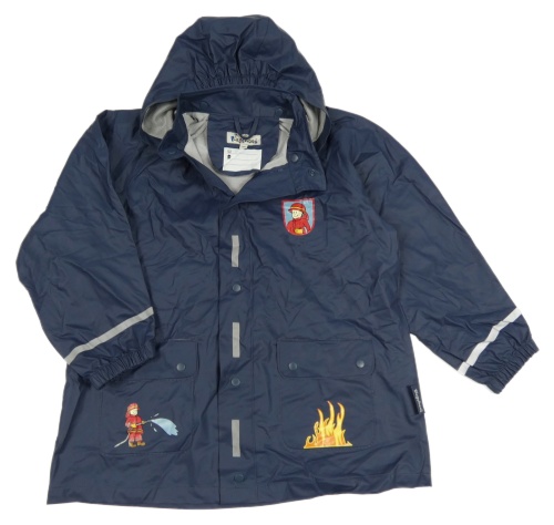 Tmavomodrá nepromokavá bunda s hasiči a odepínací kapucí Playshoes