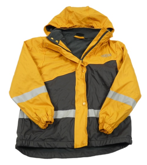 Pomerančovo-tmavošedá nepromokavá jarní bunda s kapucí