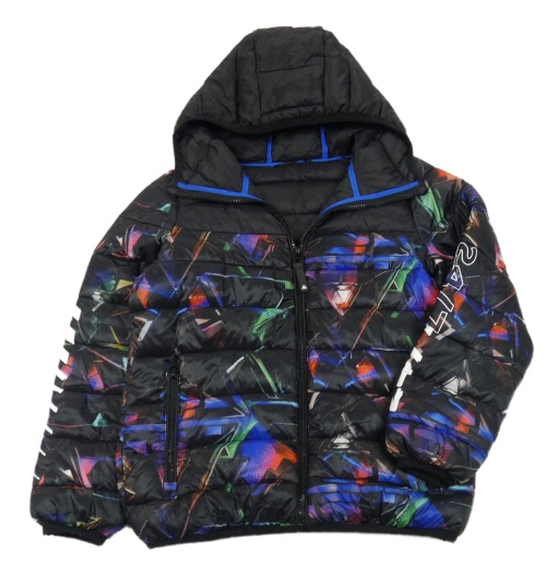 Černo-barevná vzorovaná šusťáková zateplená bunda s kapucí Next