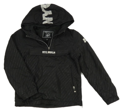 Černá šusťáková zateplená bunda s nápisy a kapucí C&A