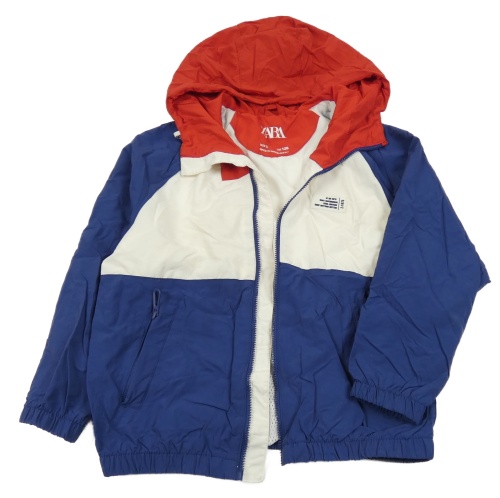 Modro-bílo-červená šusťáková jarní bunda s kapucí Zara