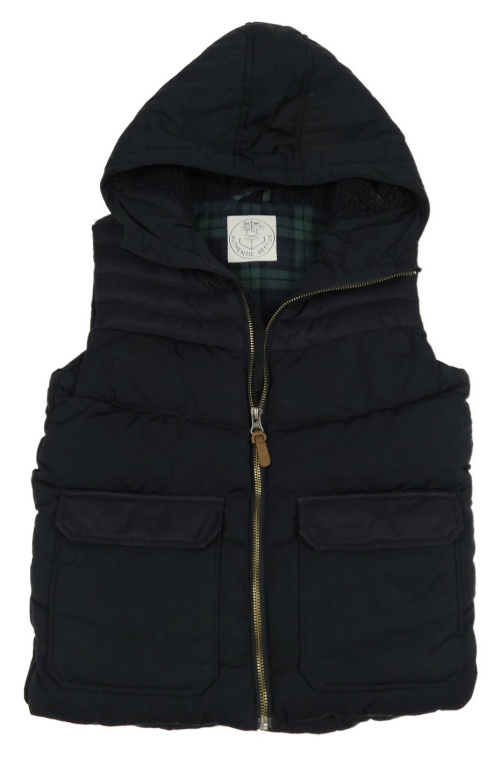 Černá prošívaná šusťáková zateplená vesta s kapucí Next