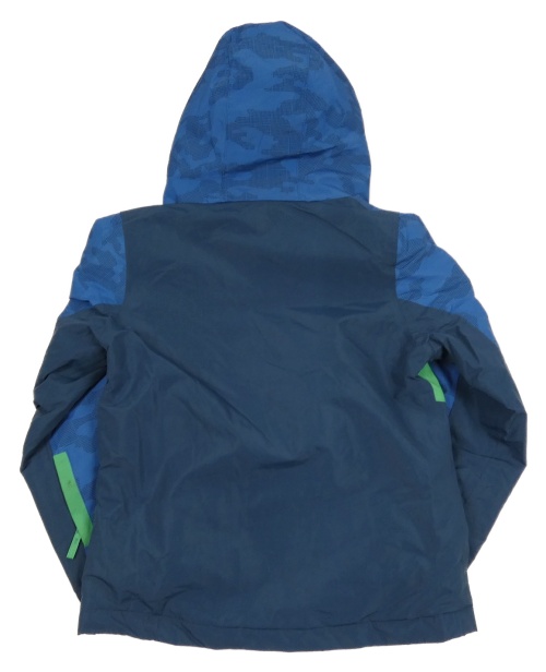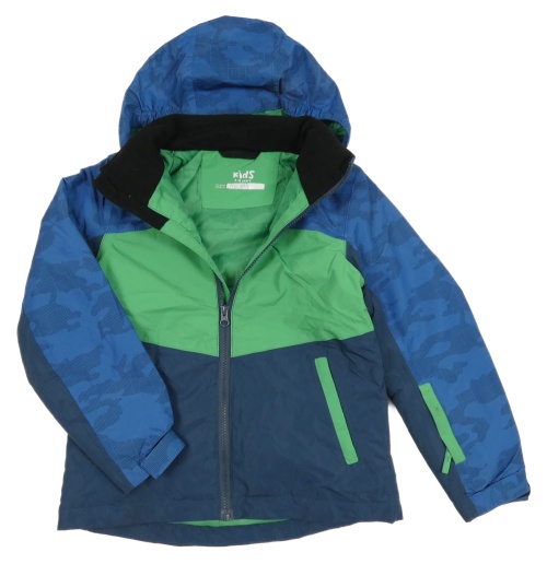 Modro-zeleno-tmavomodrá šusťáková lyžařská funkční bunda s army vzorem a kapucí Crane