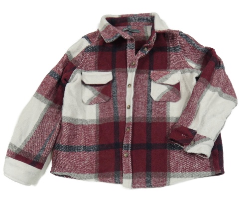 Vínovo-bílo-šedá kostkovaná košilová bunda