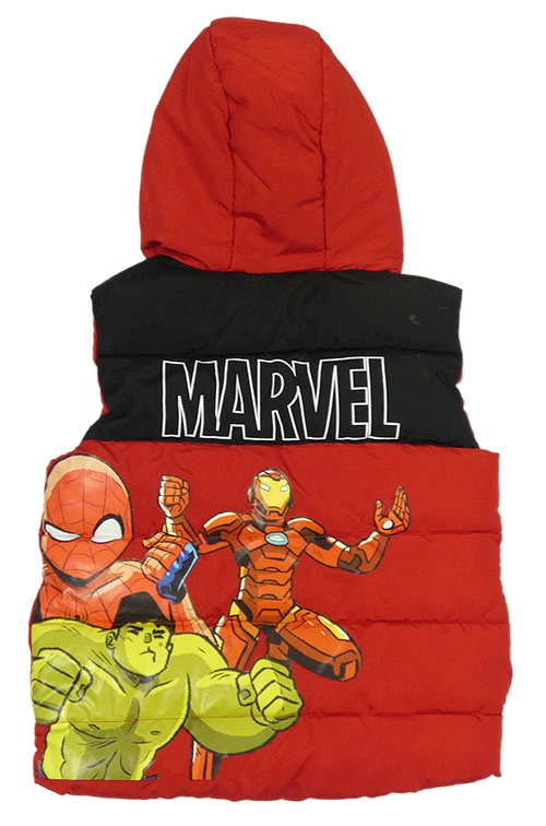 Červeno-černá prošívaná šusťáková zateplená vesta s Avengers a kapucí PRIMARK